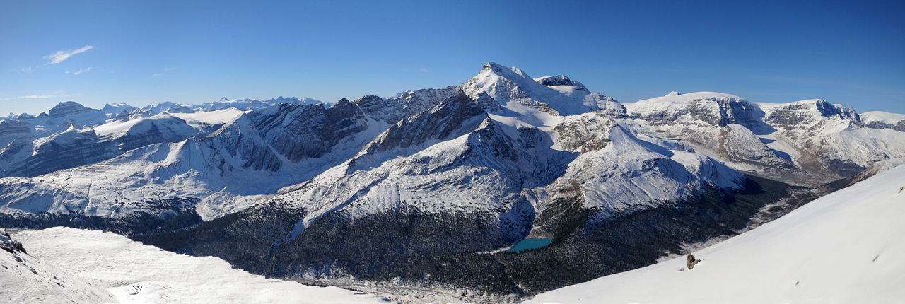 There are many amazing views in the Canadian Rockies that are simply too vast to capture within a single photograph. Thanks to the continuing advacements in image post-processing software it's becoming increasingly possible, if not easy, to combine a series of panning photographs into a single, seamless panoramic image. While these composite shots don’t always work, the results can be spectacular when they do.